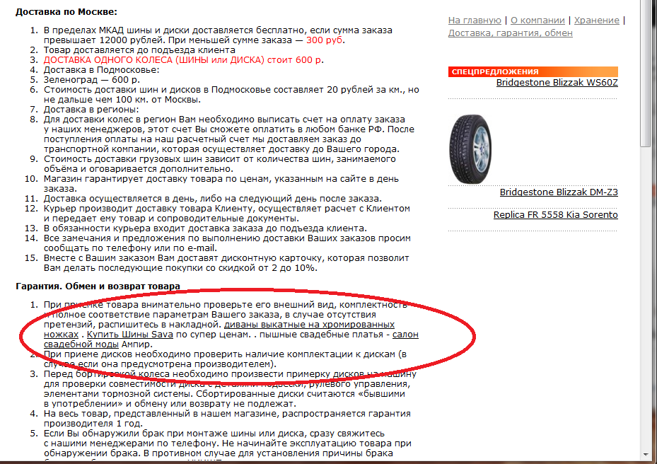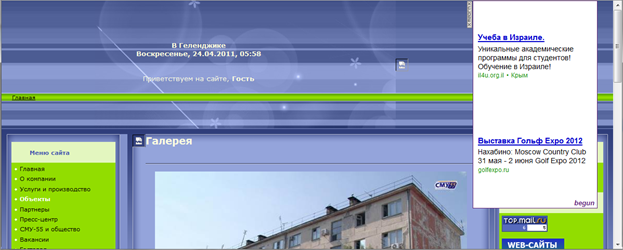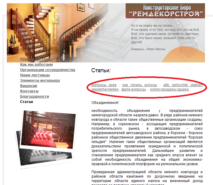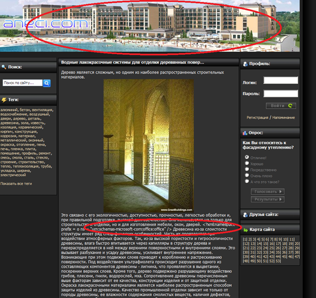 В следующем примере шапка не соответствует тематике, шапка на туристическую тематику, а сам сайт посвящен строительству. Также в тексте страницы есть не подходящие по контексту ссылки (см. пункт 4).
